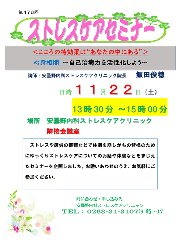 11月22日(土)| ストレスケアセミナー開催のお知らせ