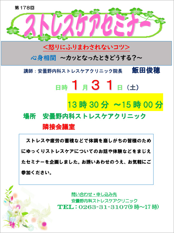 1月31日(土)| ストレスケアセミナー開催のお知らせ